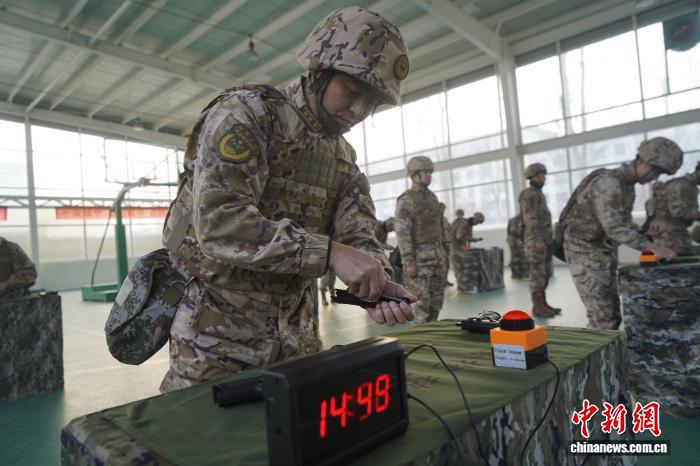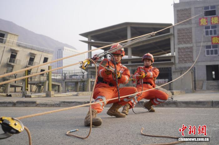 图为工卒分队正在模仿兴墟中火速启示营救通说。刘入峰 摄